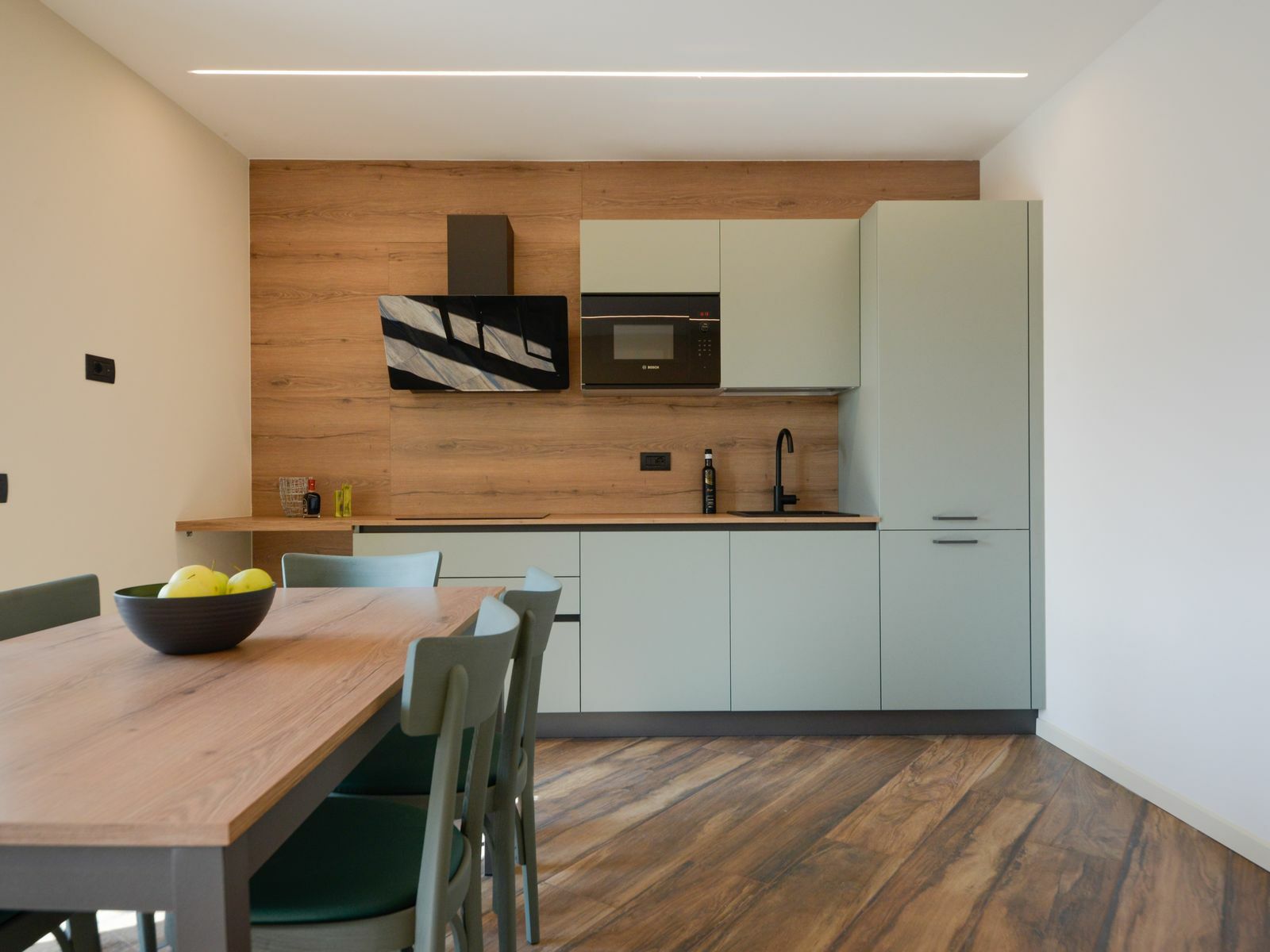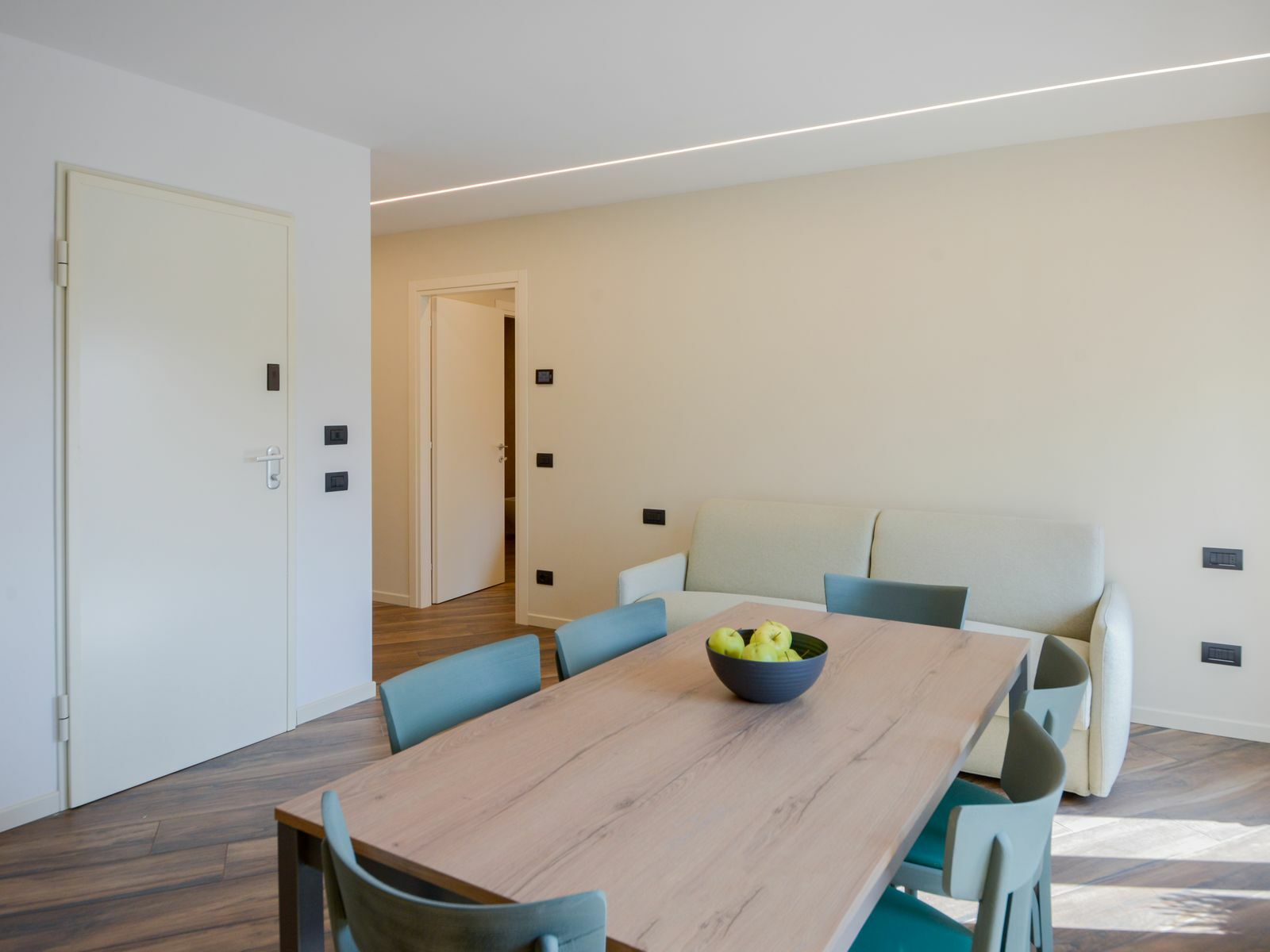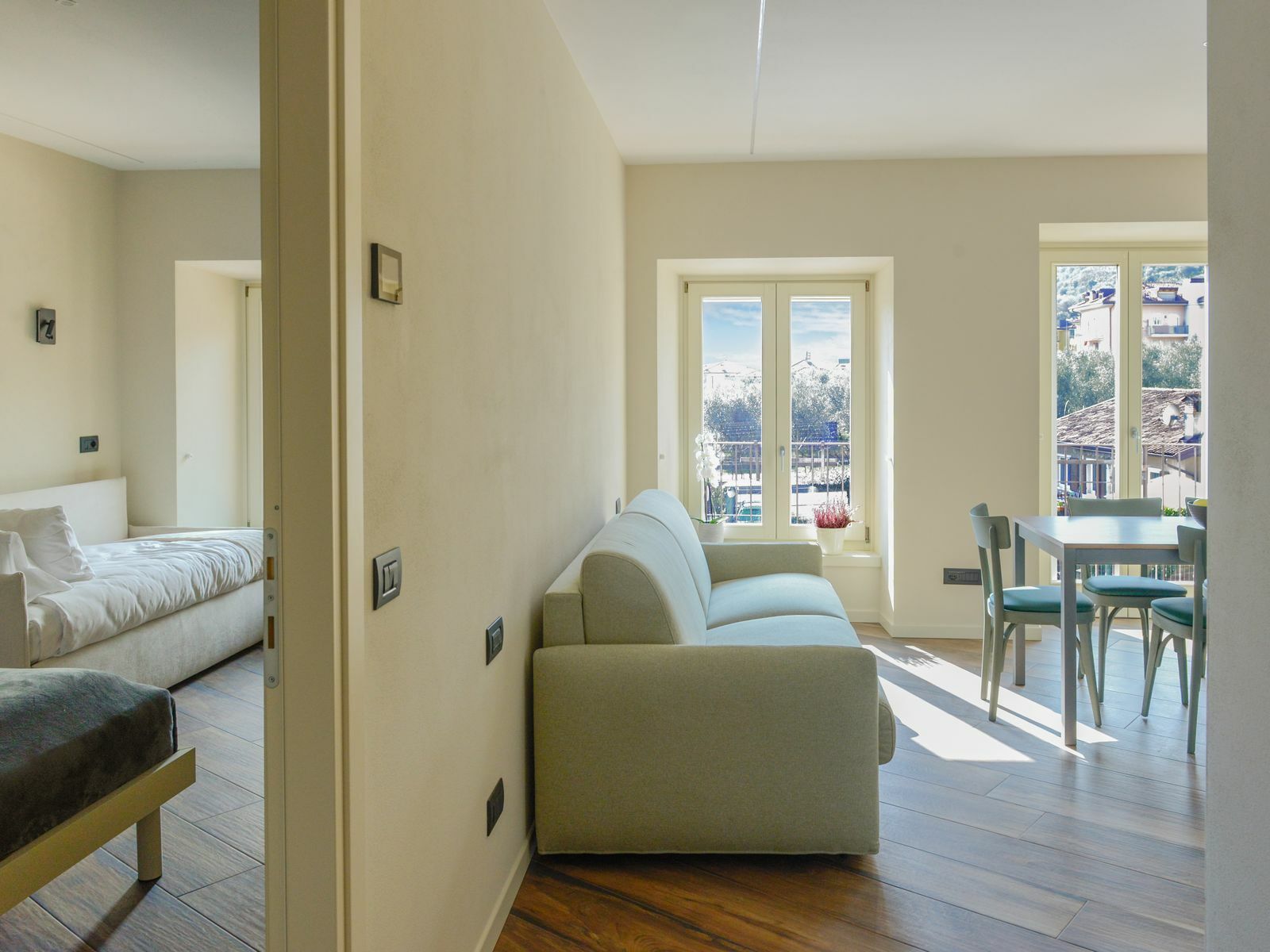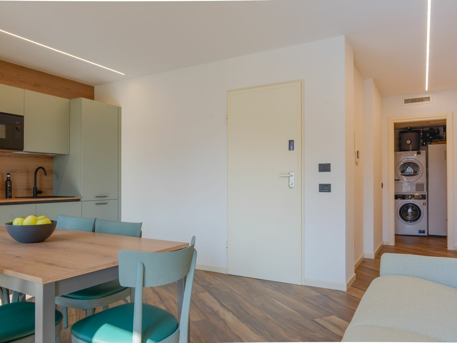 Le tonalità verde salvia e gli arredi contemporanei creano un ambiente luminoso e rilassante, per farti sentire a tuo agio fin dal primo momento.