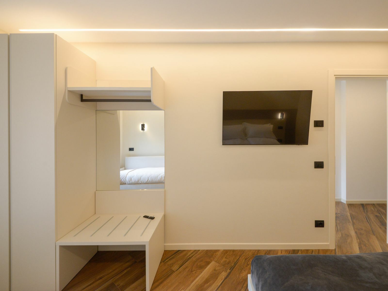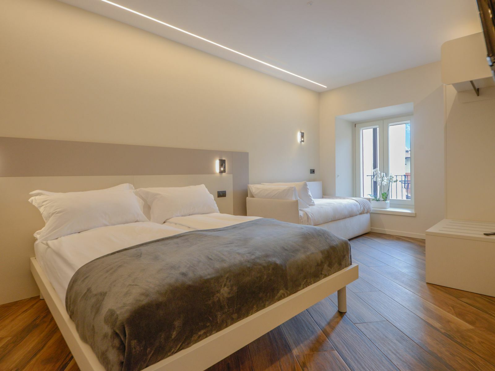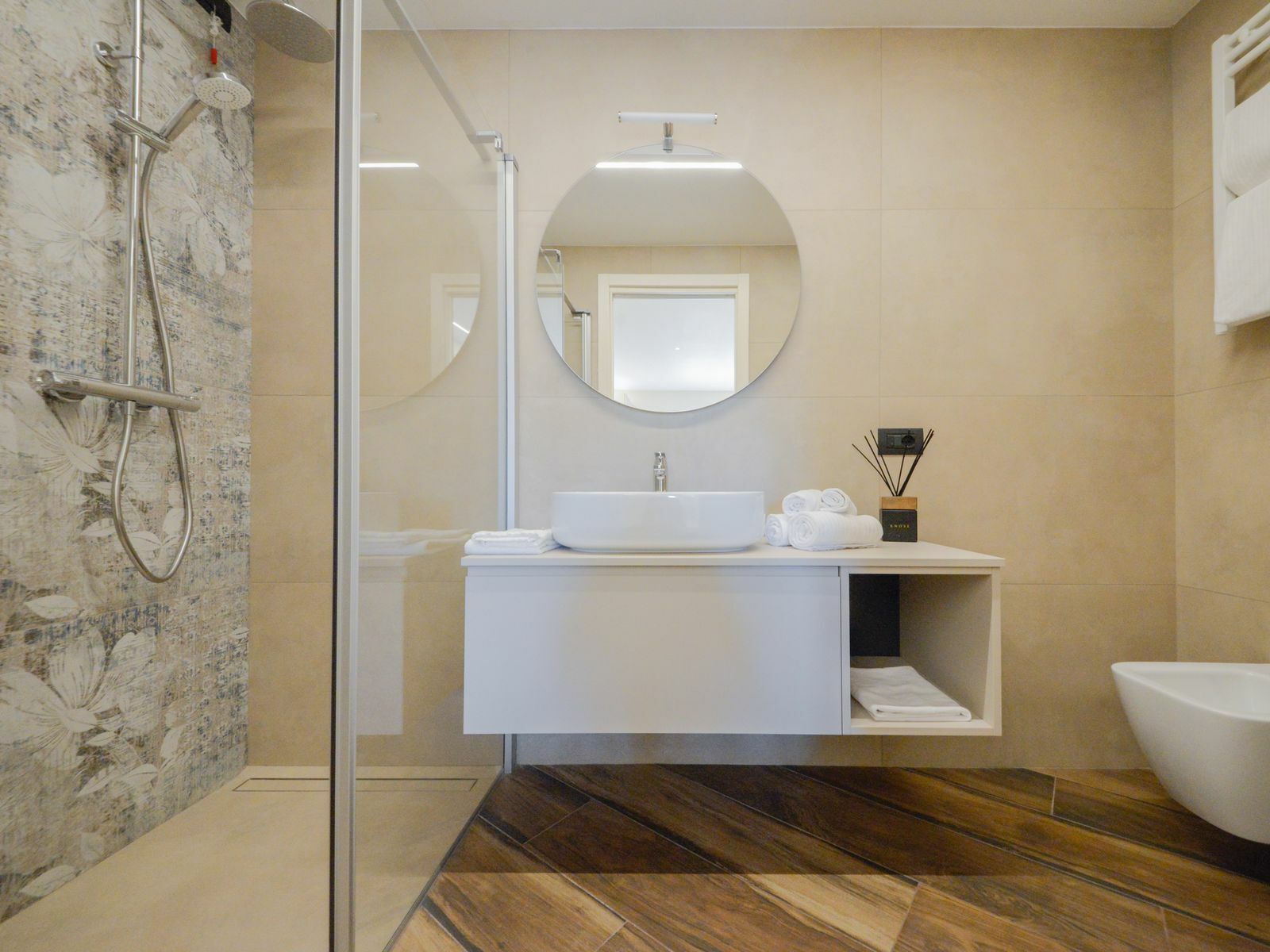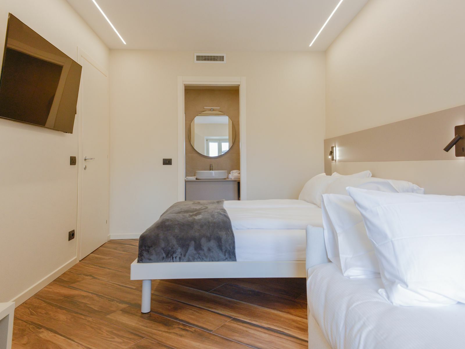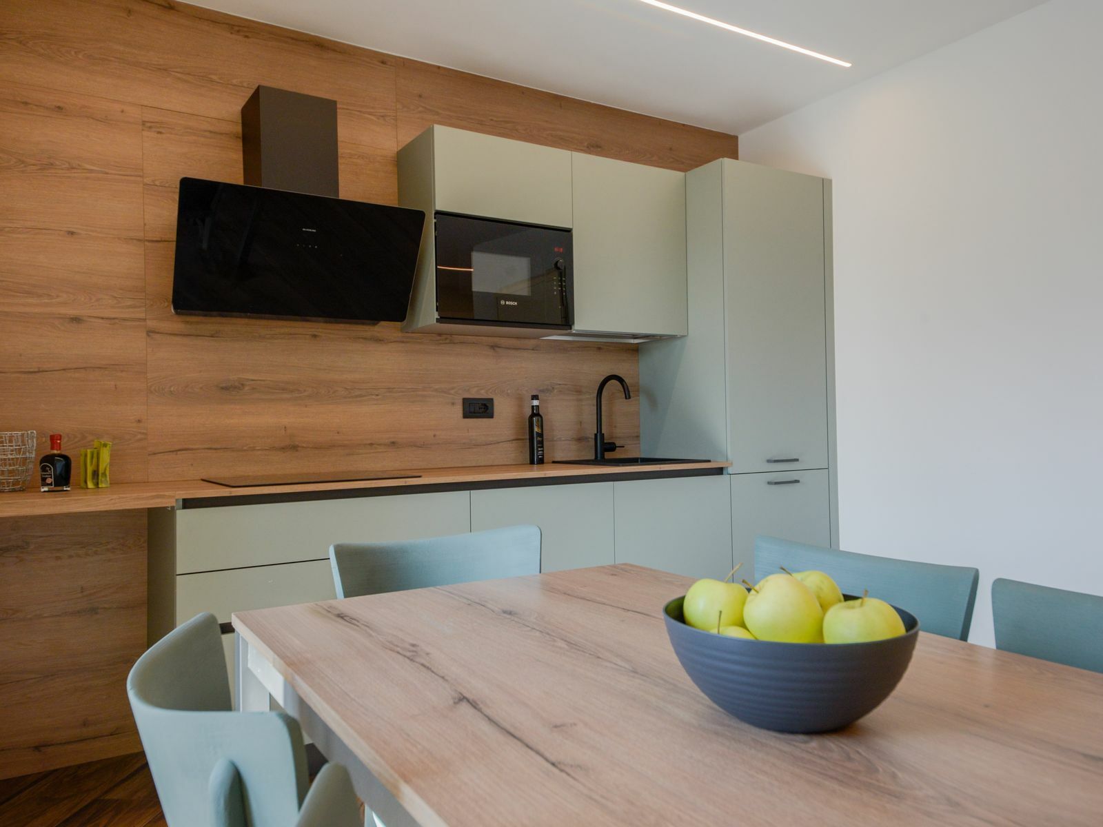 Le tonalità verde salvia e gli arredi contemporanei creano un ambiente luminoso e rilassante, per farti sentire a tuo agio fin dal primo momento.