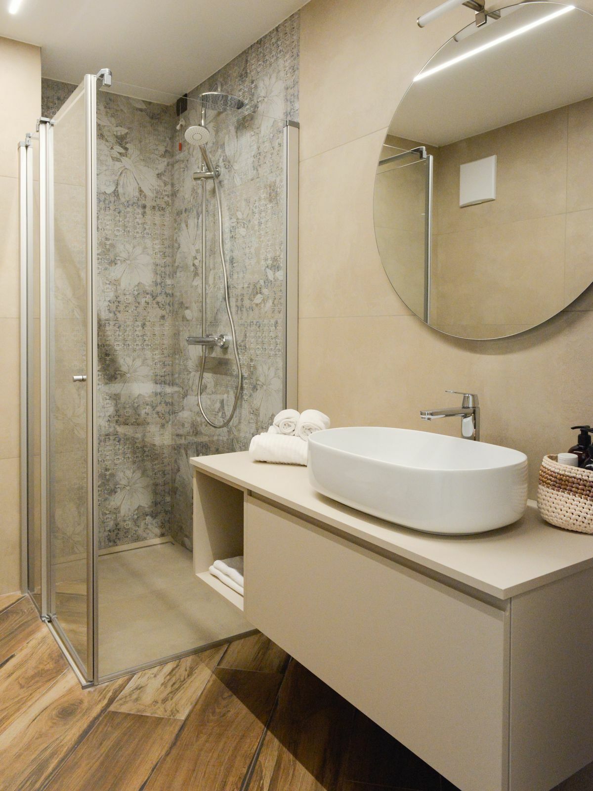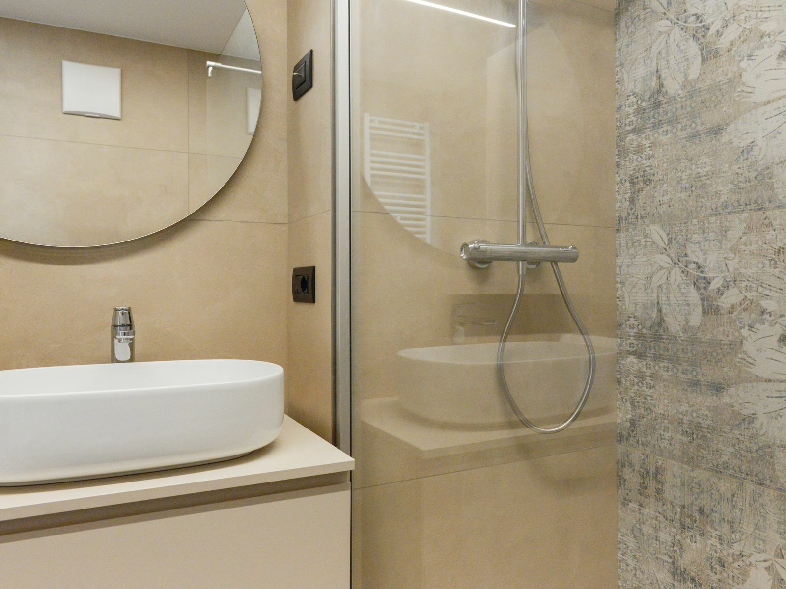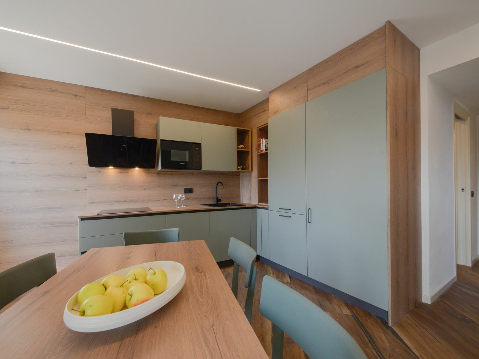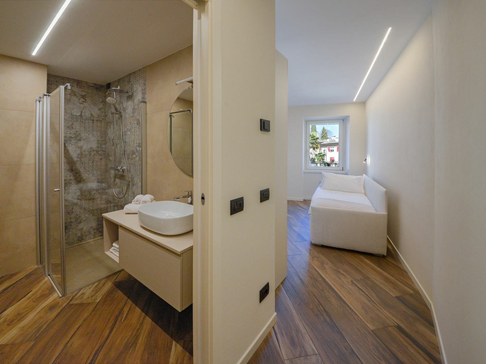 La zona giorno è uno spazio accogliente che ospita una cucina completamente attrezzata, divano letto e TV Hotel. Il secondo bagno, dotato di doccia, lavatrice e asciugatrice, rende il soggiorno pratico e funzionale.